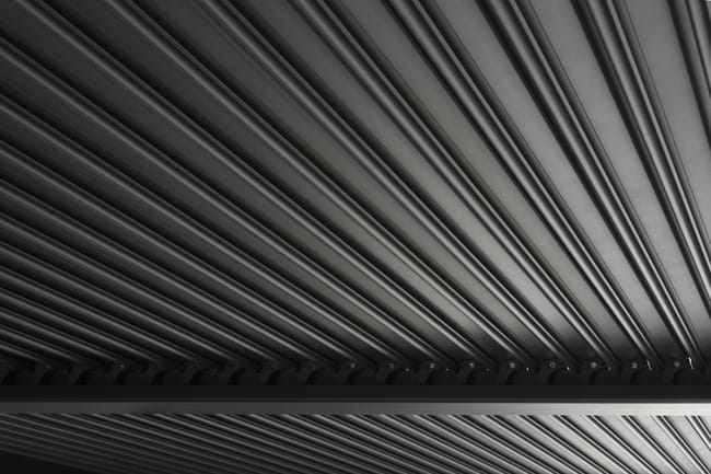 Pérgola para terraza o jardín serie Londres con estructura y cubierta de aluminio en color gris antracita. La cubierta es