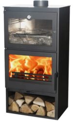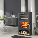 Estufa de leña con horno de acero en color gris oscuro de 9,3 kW de potencia y un rendimiento del
