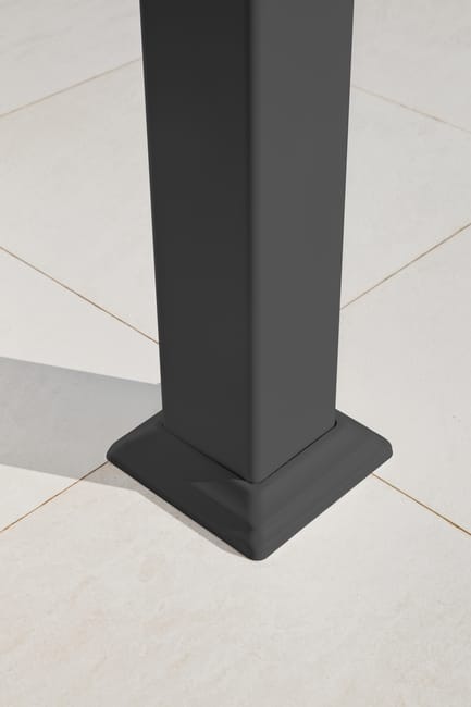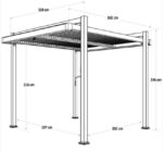 Pérgola para terraza o jardín Naterial serie Persea con estructura y cubierta de aluminio en color gris antracita. Cuenta con tratamiento resistente a la intemperie. La cubierta es de lamas orientables, que te permitirán regular la luz y la temperatura de forma sencilla, y cubre una superficie de 11,52 m². Diseñada para permitir la evacuación del agua de lluvia. Podrás fijarla en el suelo con los tornillos adecuados. Medidas: 3,20 x 2,46 x 3,60 m (ancho x alto x largo).