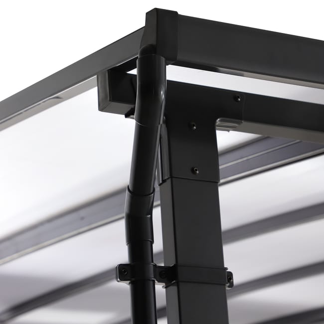 Pérgola de acero Naterial Yena con acabado de color gris antracita. Pensada para ser apoyada en una pared, la pérgola Yena te permite ampliar tu espacio de vida al aire libre para disfrutar de agradables momentos y protegerte, al mismo tiempo, del sol y de la lluvia. La estructura de la pérgola Yena se apoya en tres patas rectangulares y su gran superficie permite acomodar hasta 8 personas sentadas para compartir una comida. En verano, disfruta de una zona de sombra y protégete de los rayos UV desplegando su lona con un simple movimiento de la mano. En invierno, protégete de la lluvia gracias a su techo de policarbonato, un material termoplástico robusto y resistente a los golpes. La pérgola Yena tiene un sistema de canalones, colocados en las patas de la estructura, que conducen el agua lo más cerca posible del suelo. Este sistema permite incluso acoplar un colector de agua. Diseñada para estar instalada de forma permanente, la estructura está íntegramente realizada en aluminio. Conocido por ser robusto, este material es resistente a la lluvia y al óxido. Con su color gris antracita, el estilo sobrio y elegante de la pérgola Yena embellece tus superficies exteriores. Muy fácil de mantener: un paño húmedo y un producto neutro son suficientes para limpiarla. Medidas: 400 x 400 cm (ancho x largo).