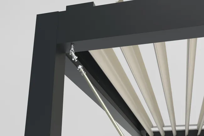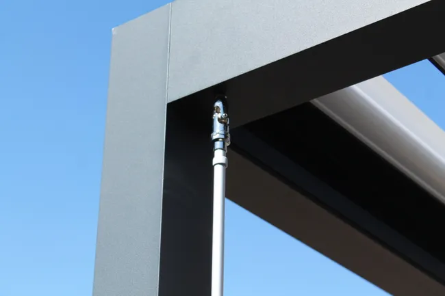 La pérgola Caleta es 100% de aluminio. La estructura y las lamas son de color blanco, lo que permite reducir el calor debajo de la pérgola. Además con la orientación, se podrá jugar con el sol y modular las temperaturas. Cada lama tiene una goma en su extremo que permite la estanqueidad entre ellas. Las vigas de la pérgola contienen canales de desagüe que dirigen el agua hacia las columnas. Existe un hueco en la base de las columnas que permite la evacuación . La instalación es sencilla. La pérgola se puede colocar cerca del mar, dispone de un tratamiento Seaside. La manivela es magnética, asi se puede quitar. Existe en 413x308cm y 308x308cm y en blanco. Podran equipar su pergola de cortinas laterales y/o de fachada, y de paneles de aluminio.
