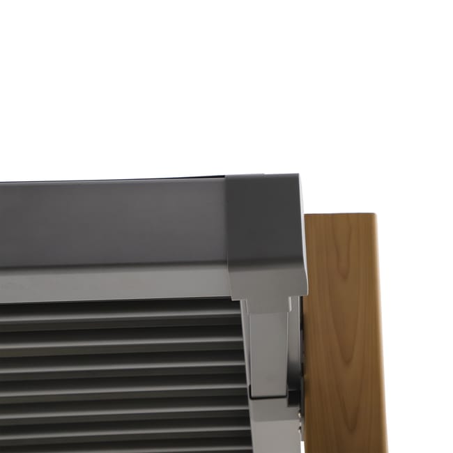 La pérgola Caleta es 100% de aluminio. Su estructura es gris antracita. Las lamas son de color blanco, lo que permite reducir el calor debajo