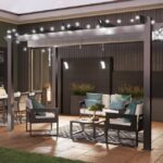 Pérgola para terraza o jardín Naterial serie Omega con estructura de aluminio en color gris antracita y cubierta corredera de poliéster gris. Su estructura cuenta con tratamiento resistente a la intemperie. La cubierta tiene un gramaje de 180 g/m² y cubre una superficie de 8,31 m². Podrás fijarla en el suelo con los tornillos adecuados. Medidas: 400 x 254 x 282 cm (ancho x alto x largo). Superficie cubierta: 348 x 248 cm.